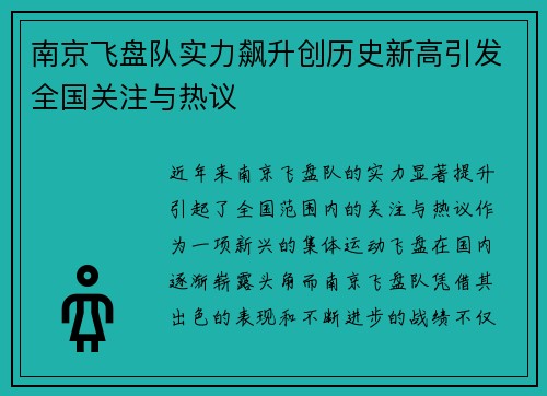 近年来,南京飞盘队的实力显著提升,引起了全国范围内的关注与热议。作为一项新兴的集体运动,飞盘在国内逐渐崭露头角,而南京飞盘队凭借其出色的表现和不断进步的战绩,不仅在地方赛事中脱颖而出,更是在全国大赛中屡获佳绩。本文将从四个方面详细探讨南京飞盘队实力飙升的原因,包括团队建设、训练方法、赛事表现以及社会影响。这些因素共同推动了球队的发展,使其成为全国飞盘界的一支劲旅,为更多年轻人带来了参与这项运动的热情。